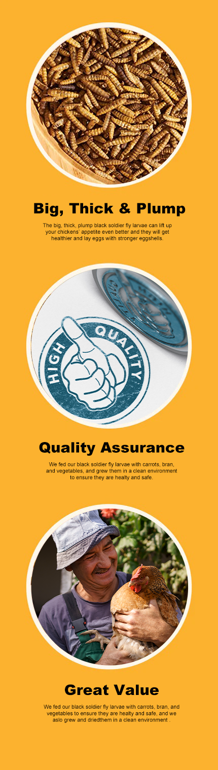 85X more calcium than meal worms with a great source of protein 48%. The chickens love this more than fruit or veggies.