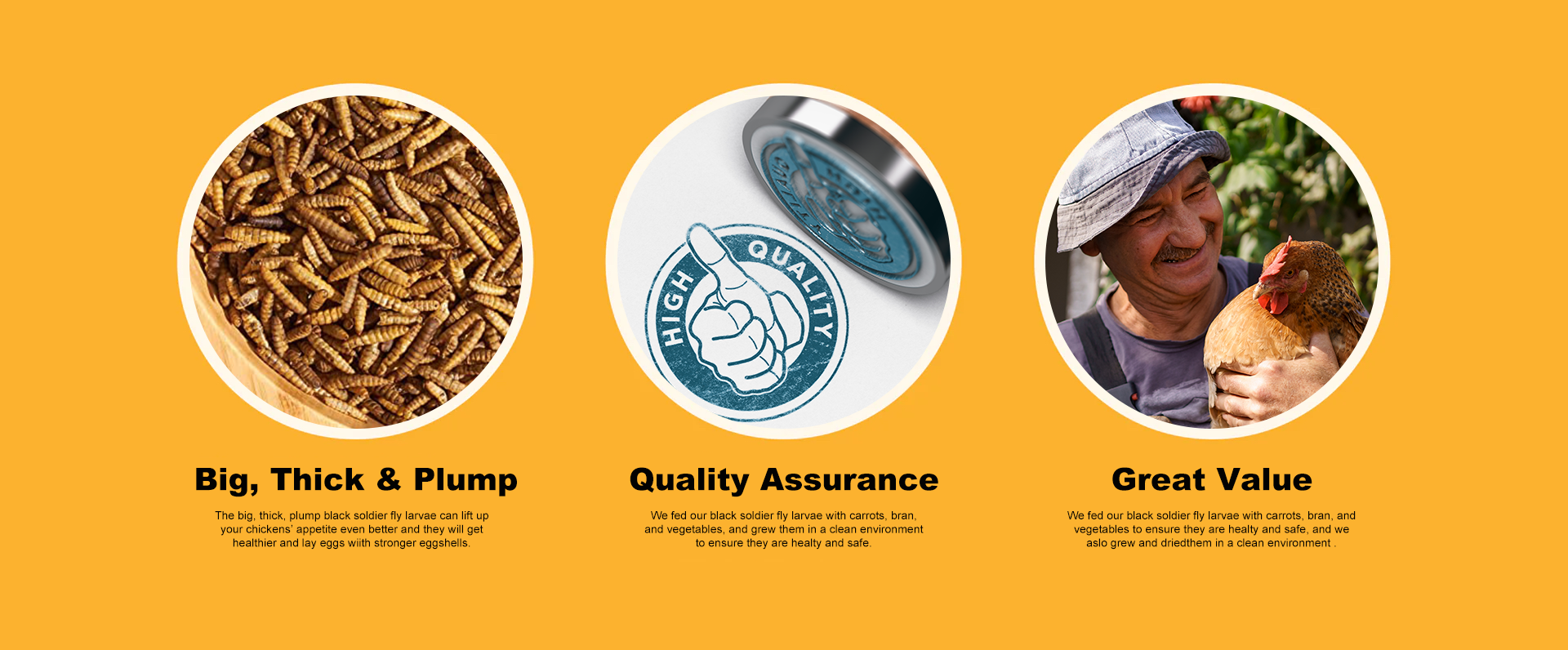 Our black solider fly larva are non-GMO and don't contain any additives, preservatives or fillers.